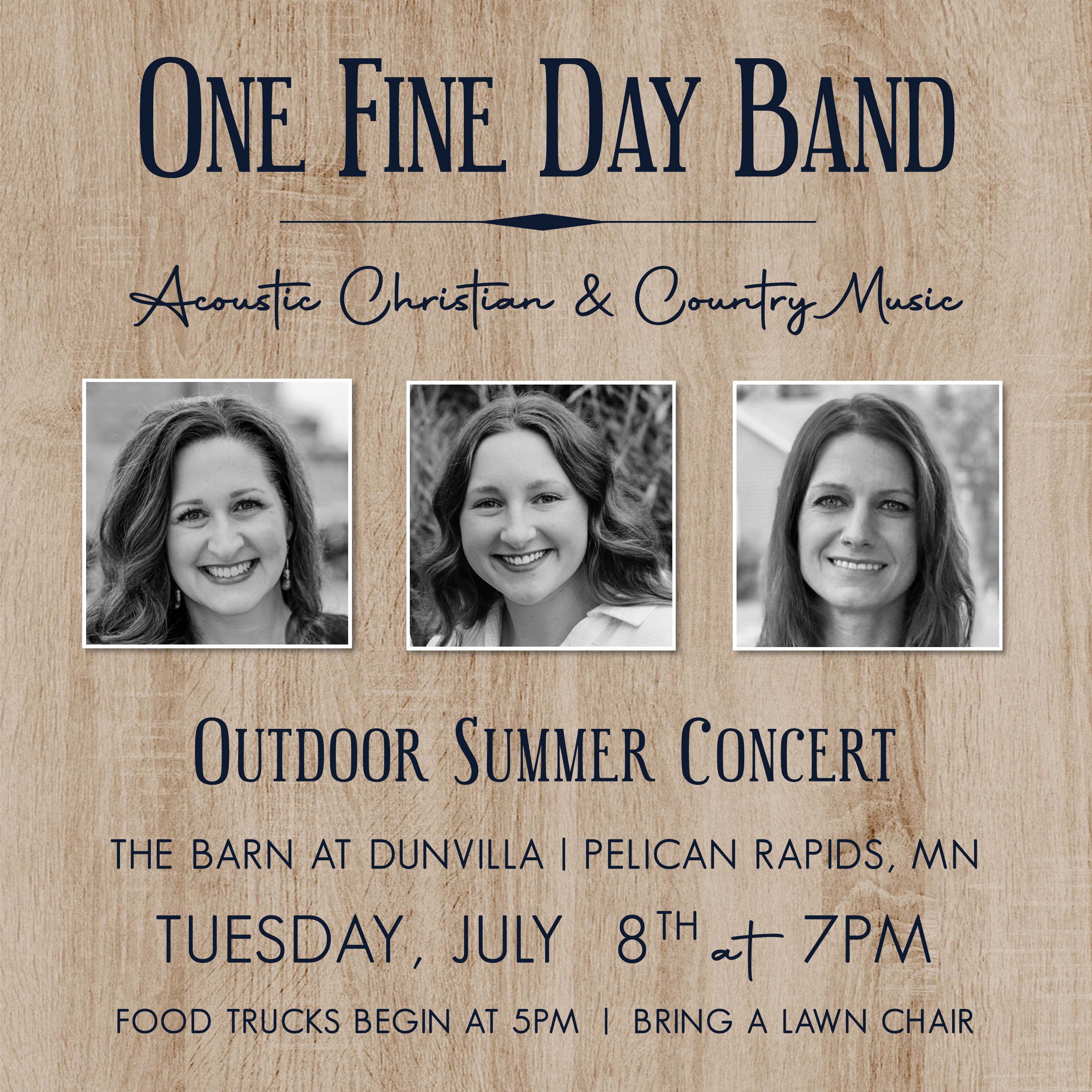 Concert with One Fine Day: The Barn at Dunvilla, Pelican Rapids, MN at 7pm